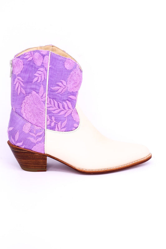 LAVENDER SILK EMBROIDERED BOOTIES LIARA