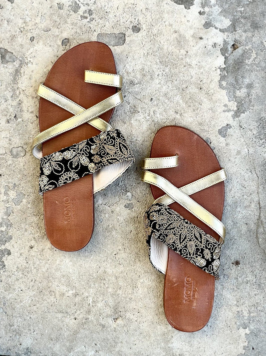 SCHWARZE BESTICKTE SANDALEN DESSA