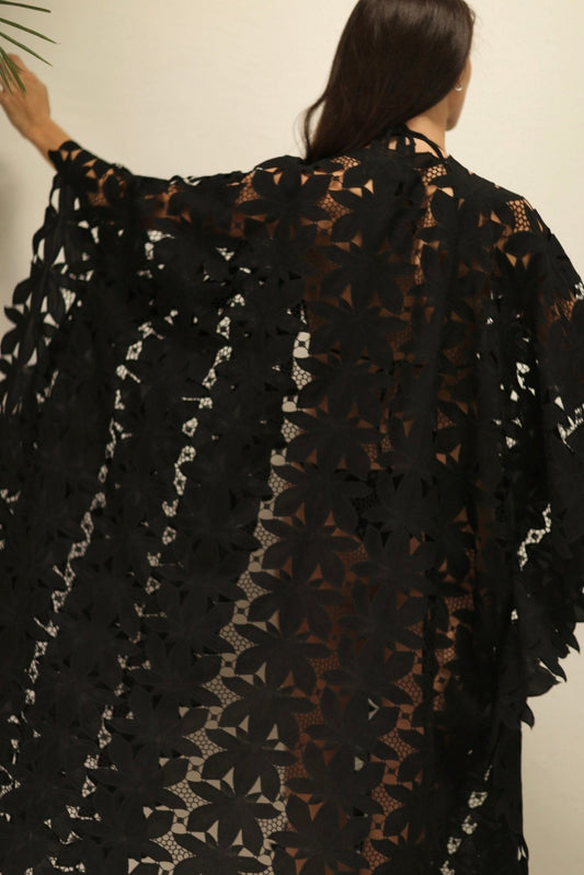 BLACK SEQUIN EMBROIDERED KIMONO LIVA