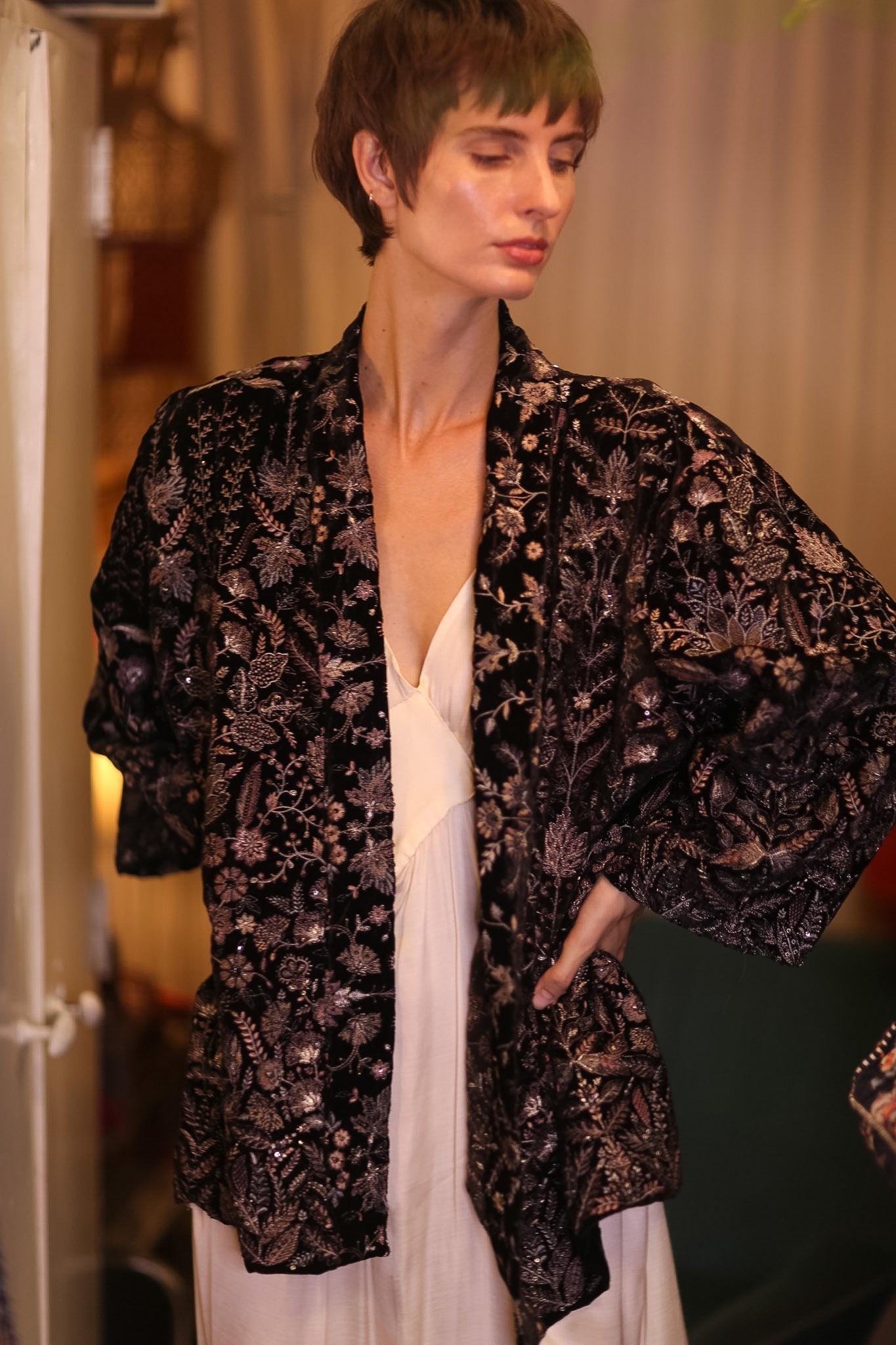 - hand embroidered velvet