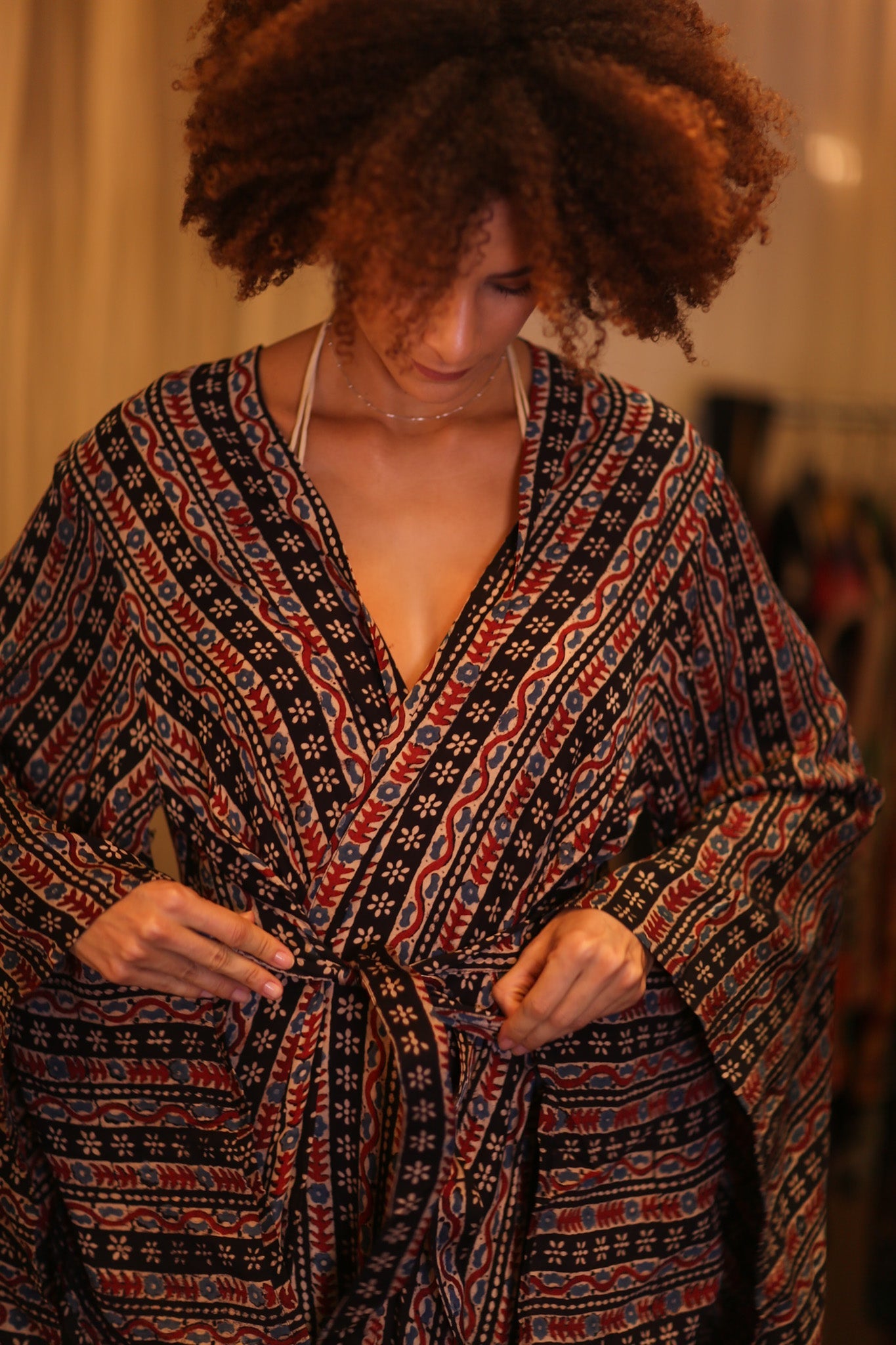 - hand block print on silk