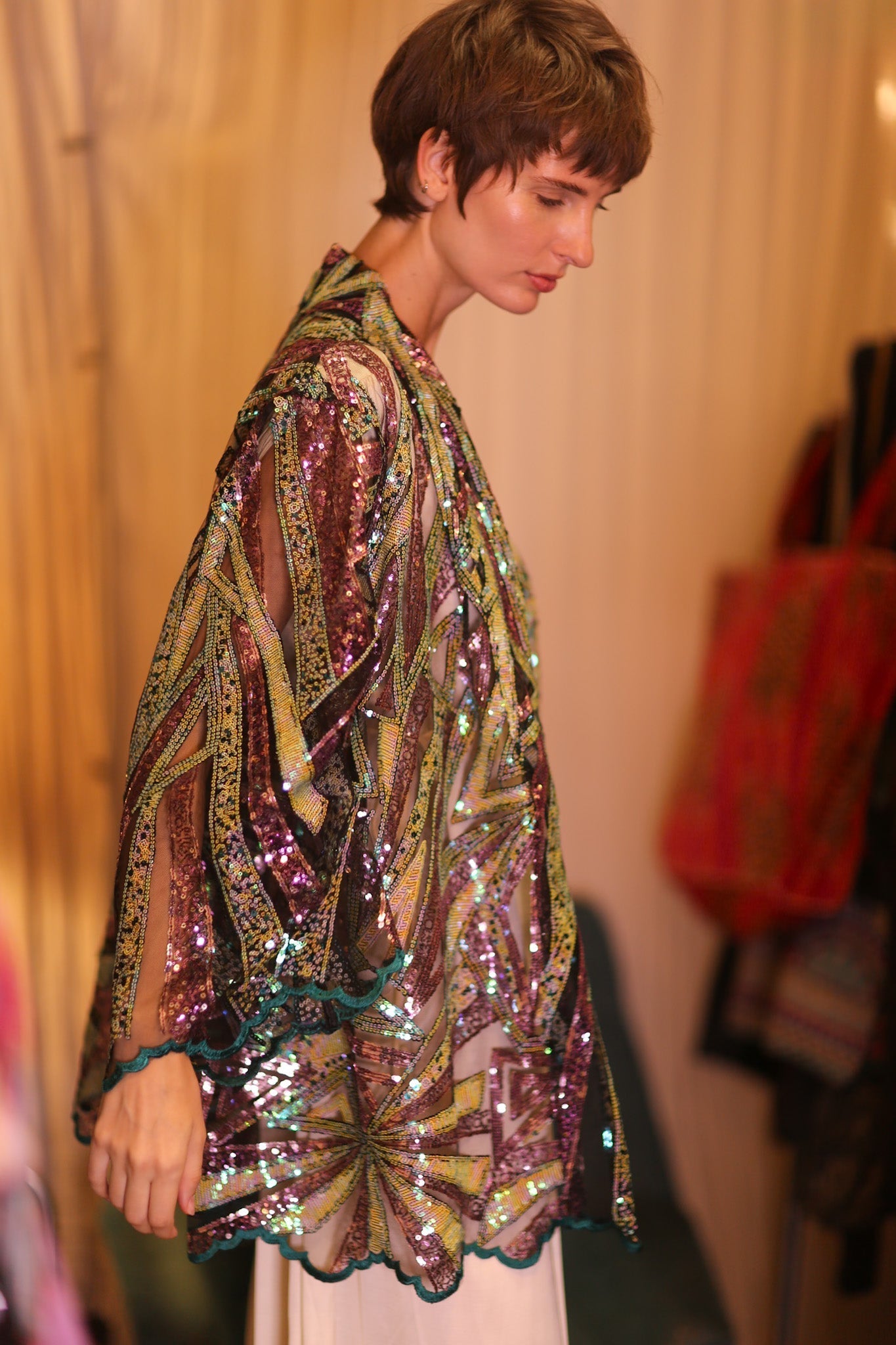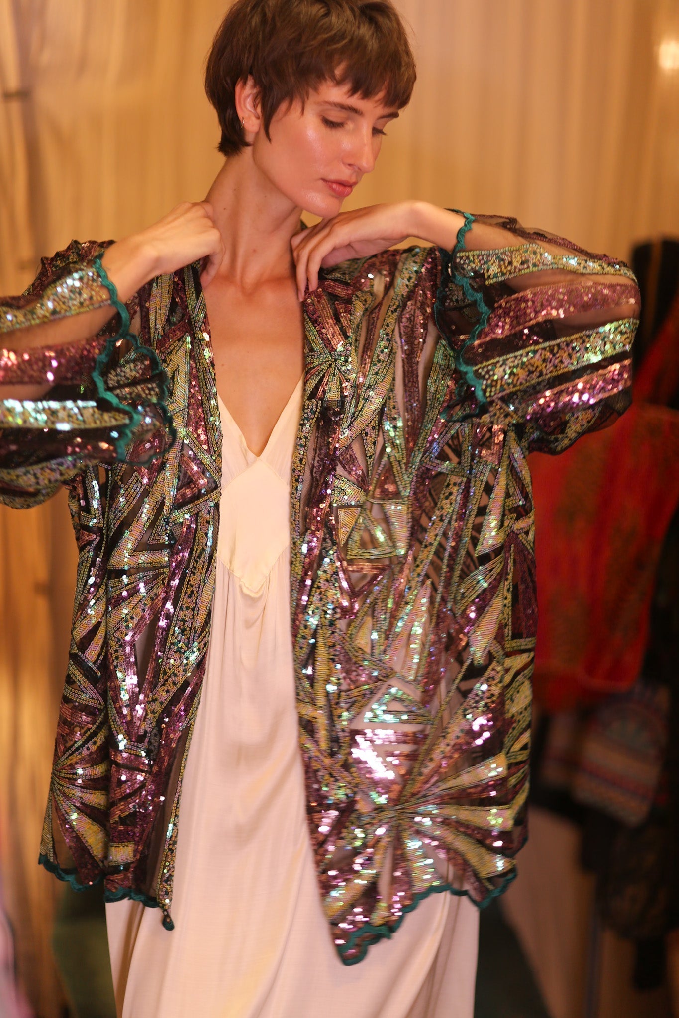 LIGHTNING SEQUIN SHORT KIMONO ILLUME