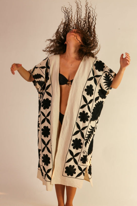 COTTON EMBROIDERED LACE KIMONO EWAS