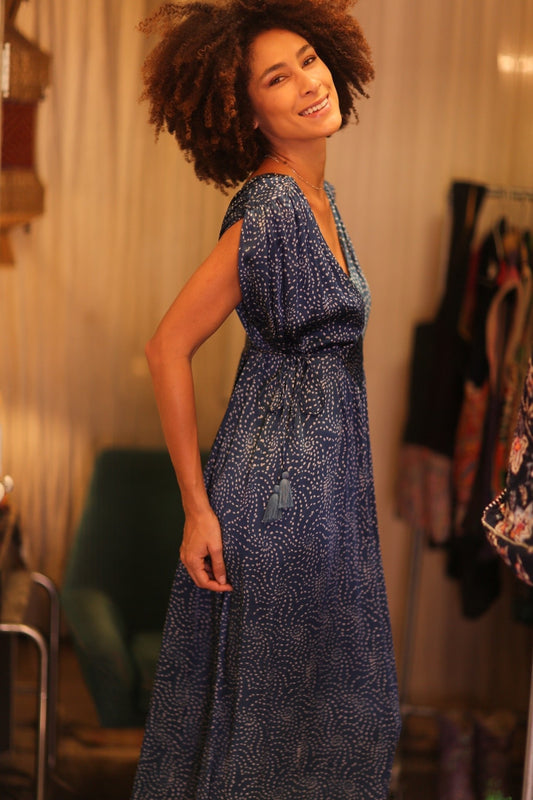 GABRIELE WRAP SILK DRESS PLUMERIA