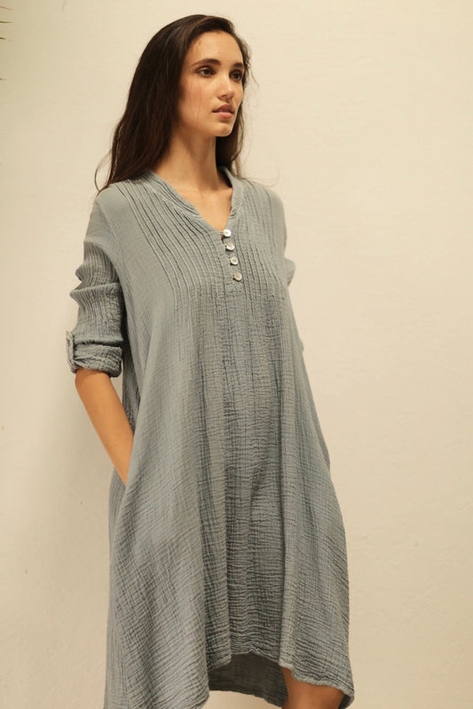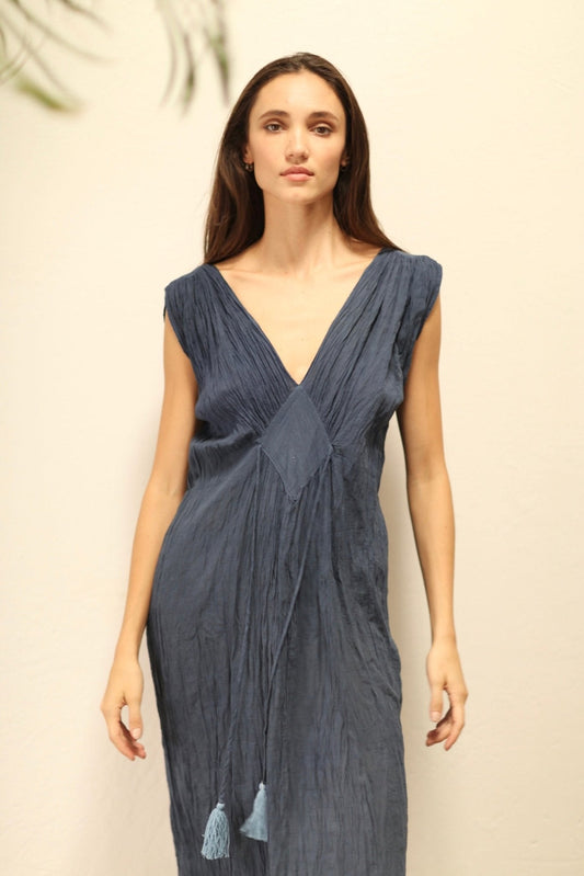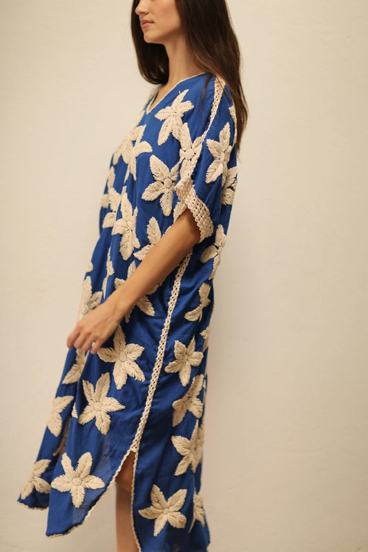 TYCHE BLUE DRESS FLOWER EMBROIDERED