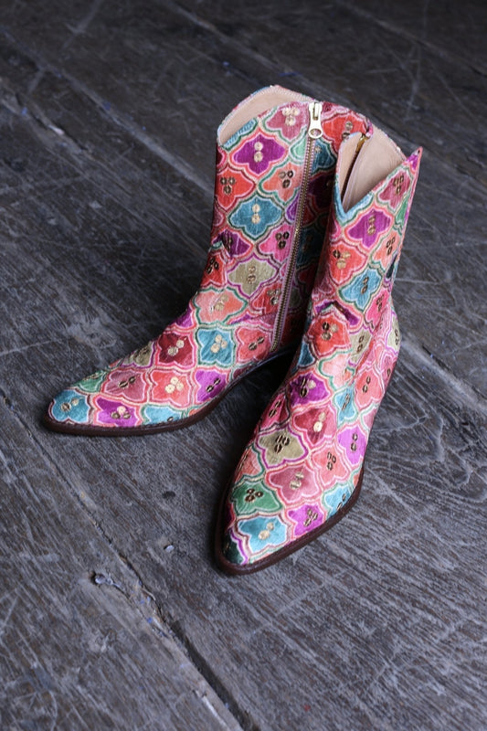 EMBROIDERED VELVET BOOTS PAISLEY PATTERN DESIGN